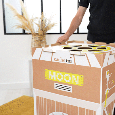 Notre quotidien ne nous laissant que peu de répit, nous avons fait le choix de vous simplifier la vie. Les cabanes en carton "cache toi" sont livrées montées et prêtes à faire rêver, pas de montage, pas de notice…